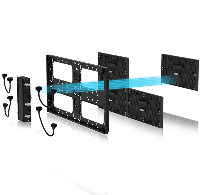 Plus 4 系列显示屏主要由电源主控盒、、、信号线、、、箱体框架和显示模块四部分组成,,,